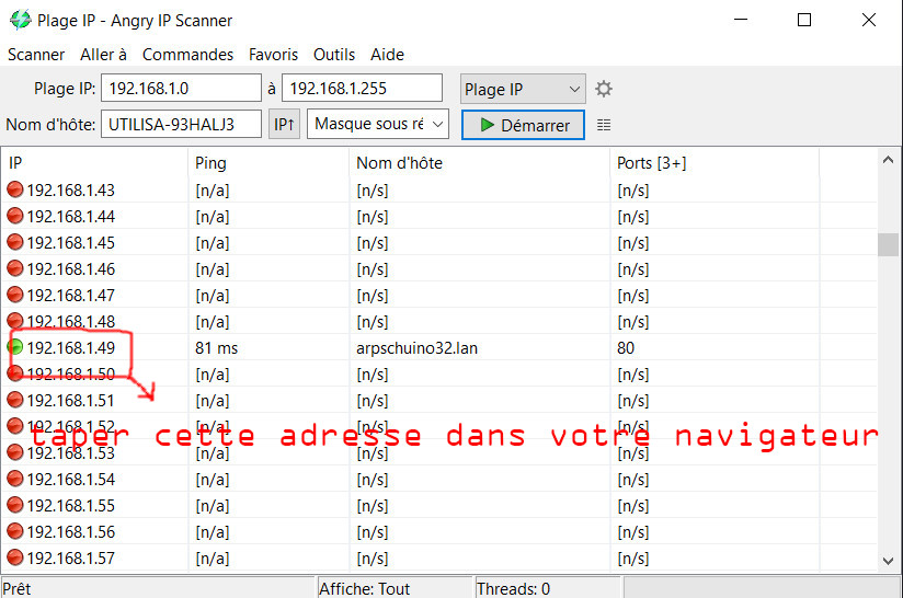 Vous pouvez aussi utiliser un scanner réseau. Sur ordinateur, Windows, Mac ou Linux on peut par exemple utiliser Angry IP Scanner (open sources).
