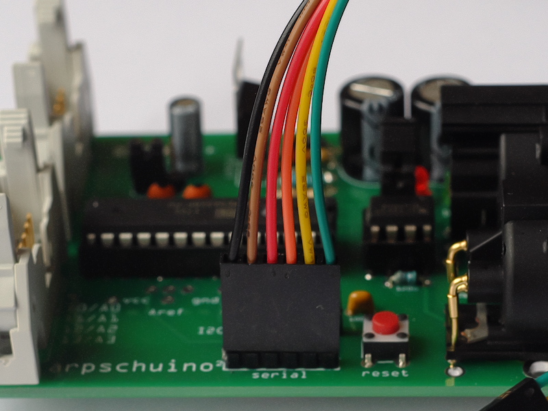 On peut maintenant brancher l'adaptateur sur l'arpschuino. Attention au sens, gnd en face du câble noir ou de gnd.